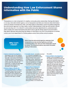 Sharing information is a vital component in healthy community-police relationships. This fact sheet will highlight how, when, and what types of information can/cannot be publicly share by law enforcement agencies.